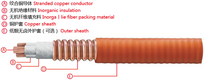 金屬護(hù)套無(wú)機(jī)礦物絕緣電纜采用先進(jìn)的生產(chǎn)工藝,全自動(dòng)機(jī)械化生產(chǎn),質(zhì)量可靠。產(chǎn)品結(jié)構(gòu)先進(jìn),導(dǎo)體采用多股銅絞線、阻抗小、載流量大、柔軟性好; 絕緣采用耐高溫(1000℃)無(wú)機(jī)礦物絕緣云母帶繞包,絕緣層緊密均勻、耐潮濕、柔性好;護(hù)套采用銅護(hù)套(耐高溫),經(jīng)連續(xù)軋紋而成。